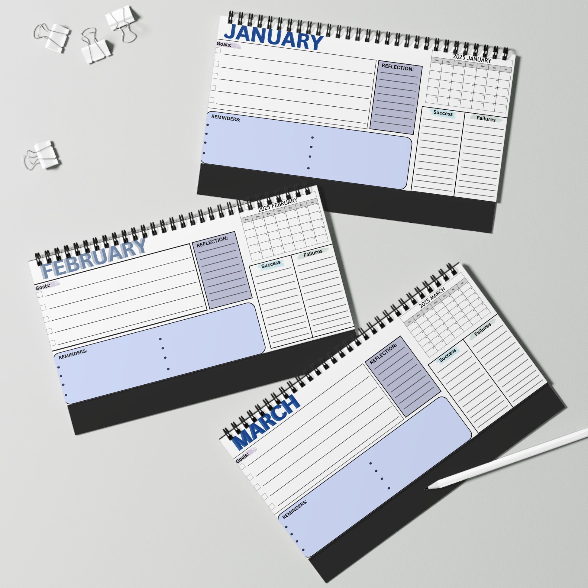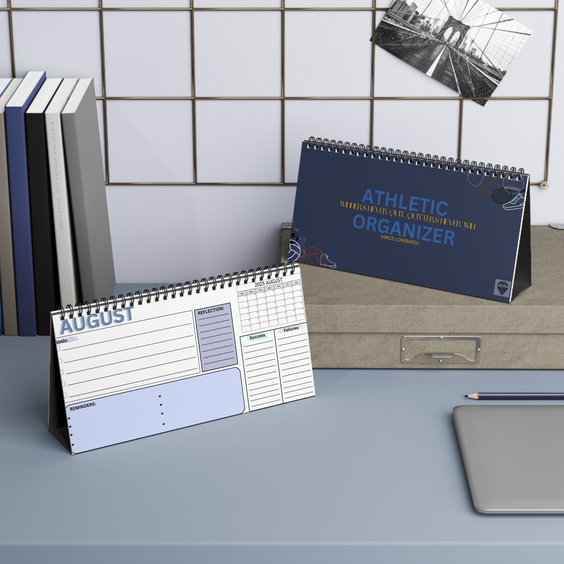A tool to help athletes succeed and improve at their sport. Athletes can reflect on their past successes and failures to figure out what they need to work on while celebrating their accomplishments. They can also set monthly goals, helping them target their skills and grow. Additionally, we include calendar and a place to write down reminders for each month to help with organization.