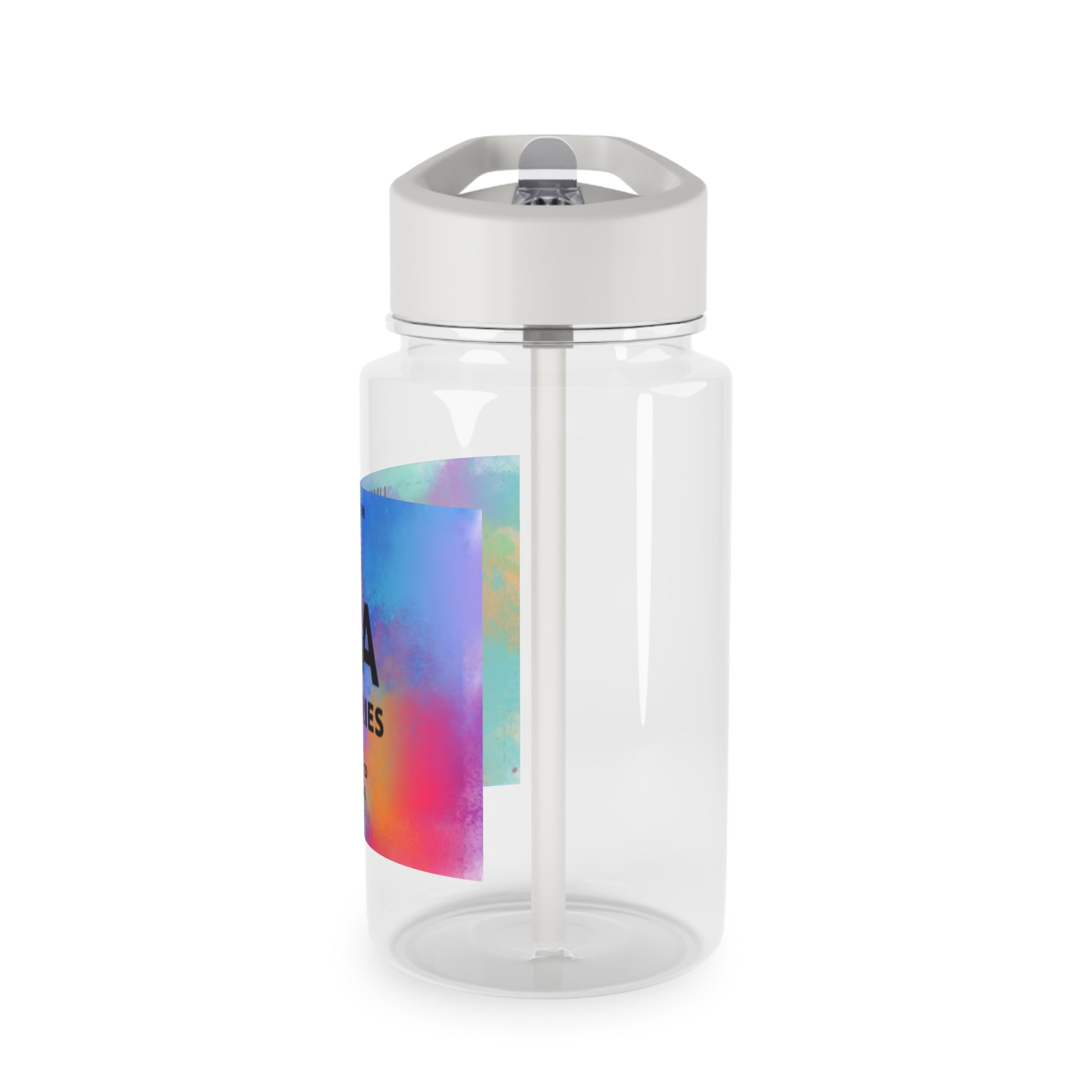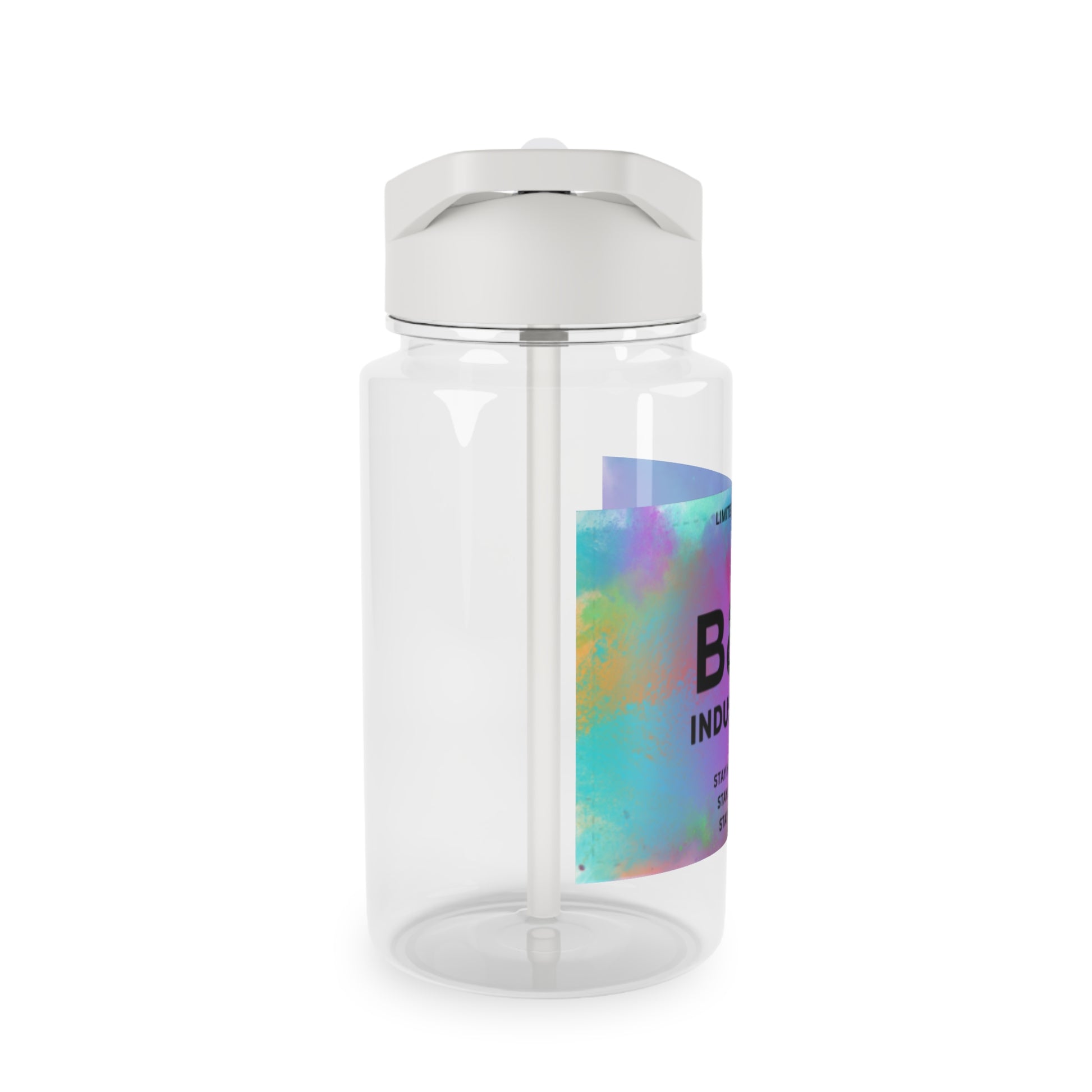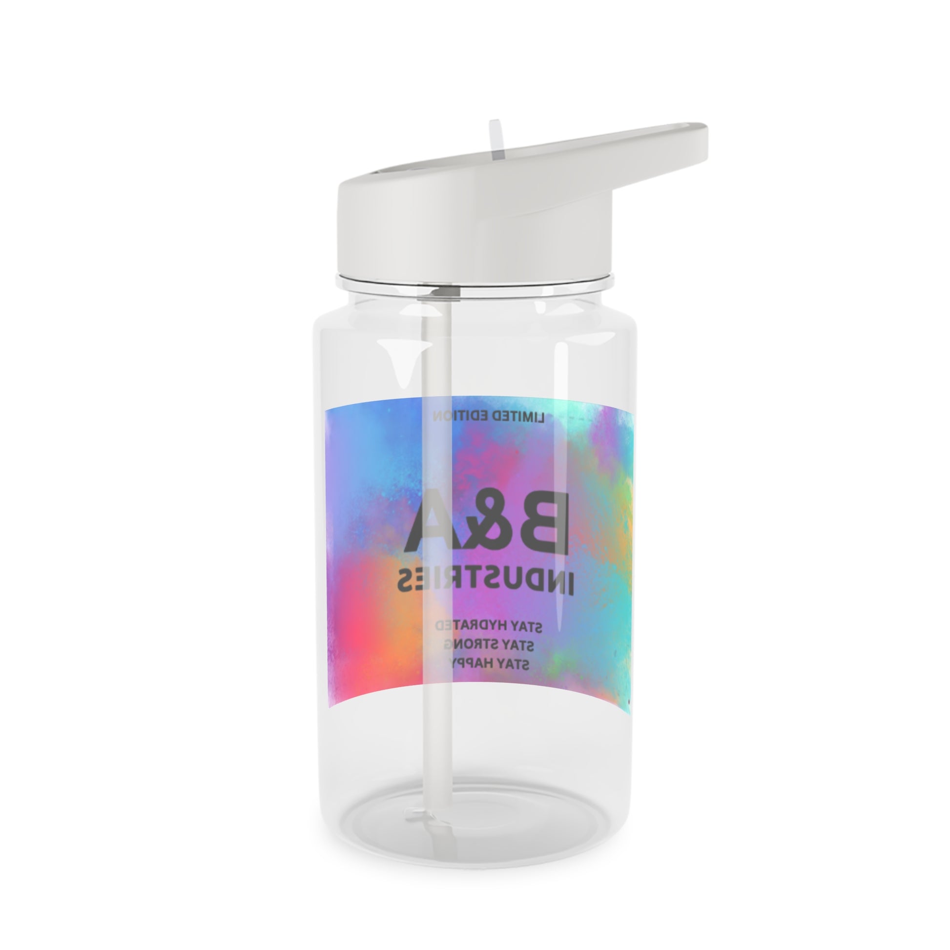 This water bottle shows a colorful water bottle and a fun way to drink. It has encouraging words like “ STAY STRONG” and “ STAY HAPPY.” This water bottle is for people that like a lot of color. It is also for people who are struggling because it says encouraging words to lift you up when your down. Carry this water bottle anywhere with ease and drink whenever you want. This water bottle is durable and has a long lasting material.