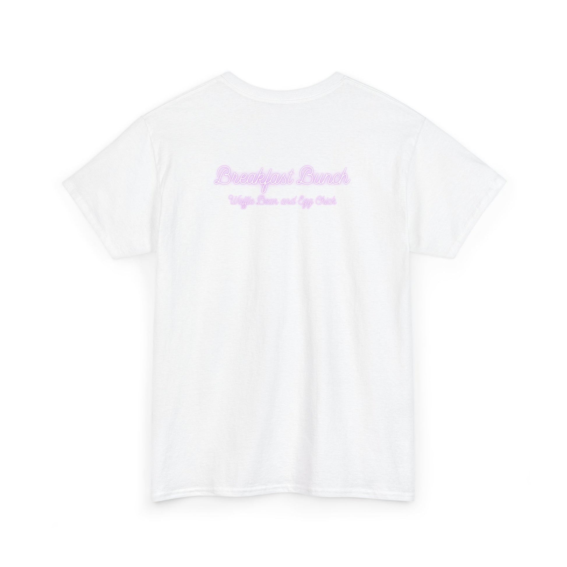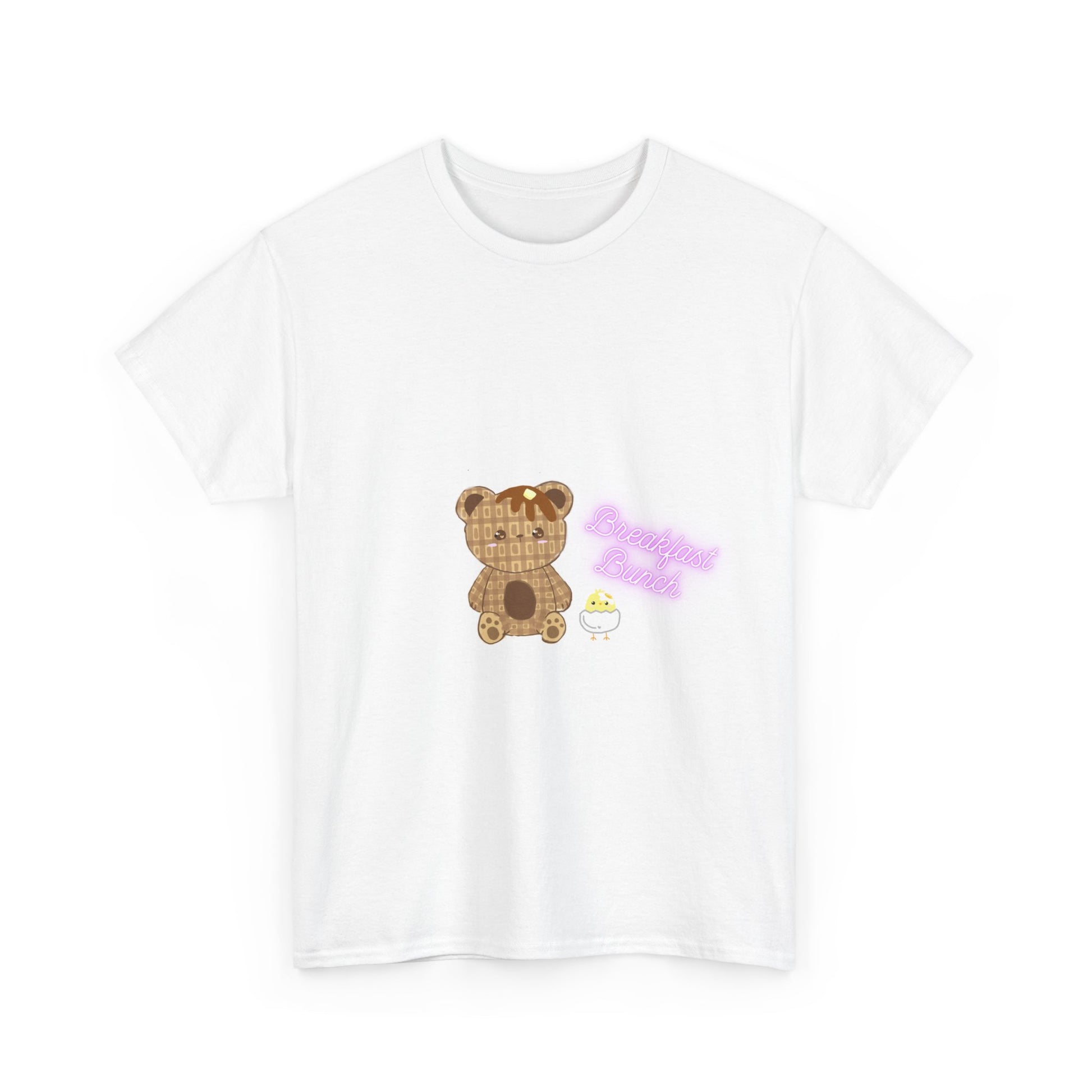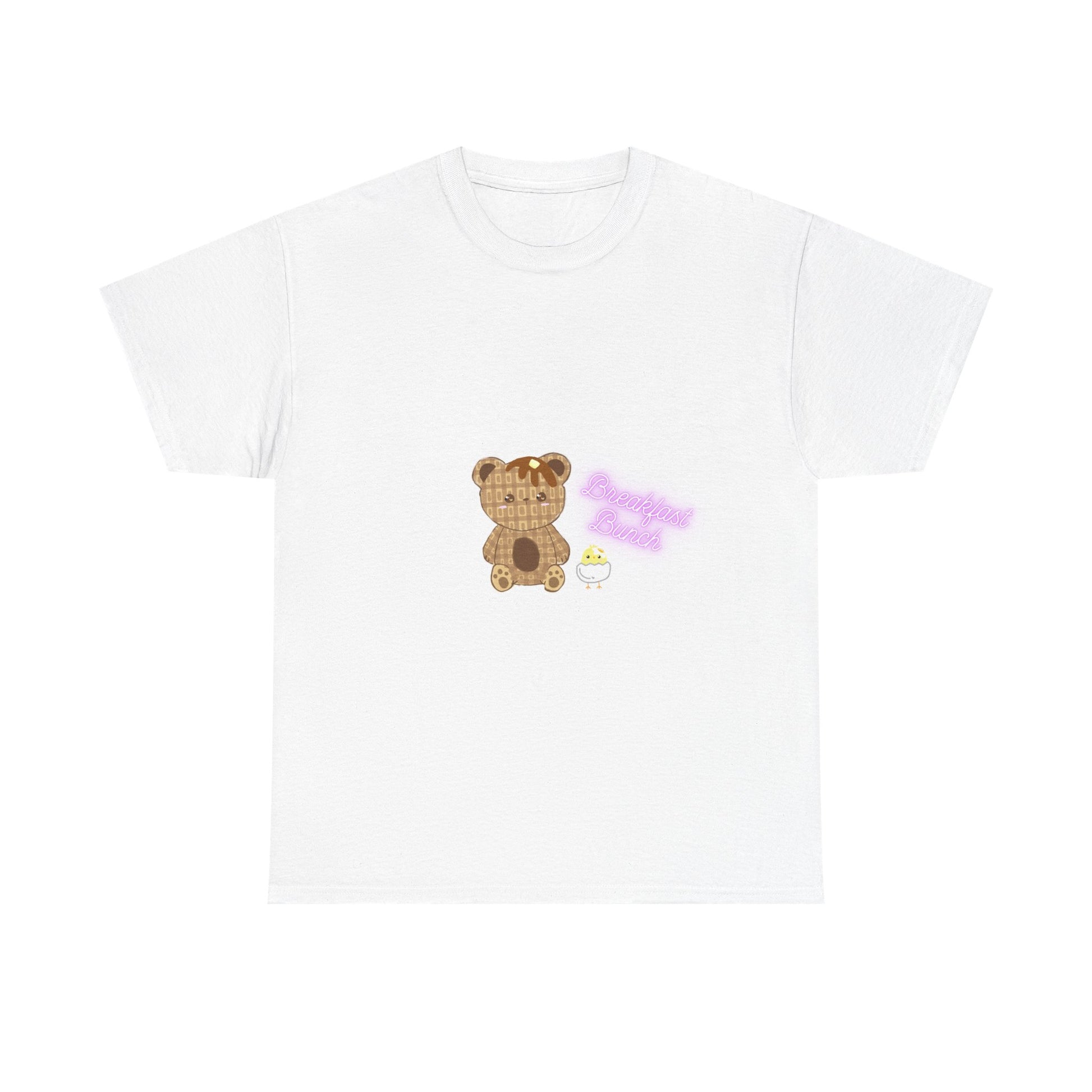 Buy this hand drawn, very cute breakfast theme T-Shirt! It has a hand drawn waffle bear and egg chick on the front. And the words “Breakfast Bunch Waffle bear and Egg chick” on the back. Very cute T-Shirt for Girls, Boys, and Adults!