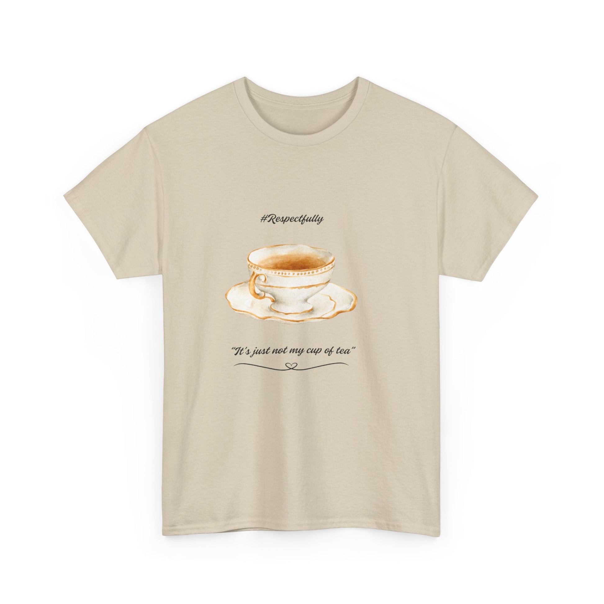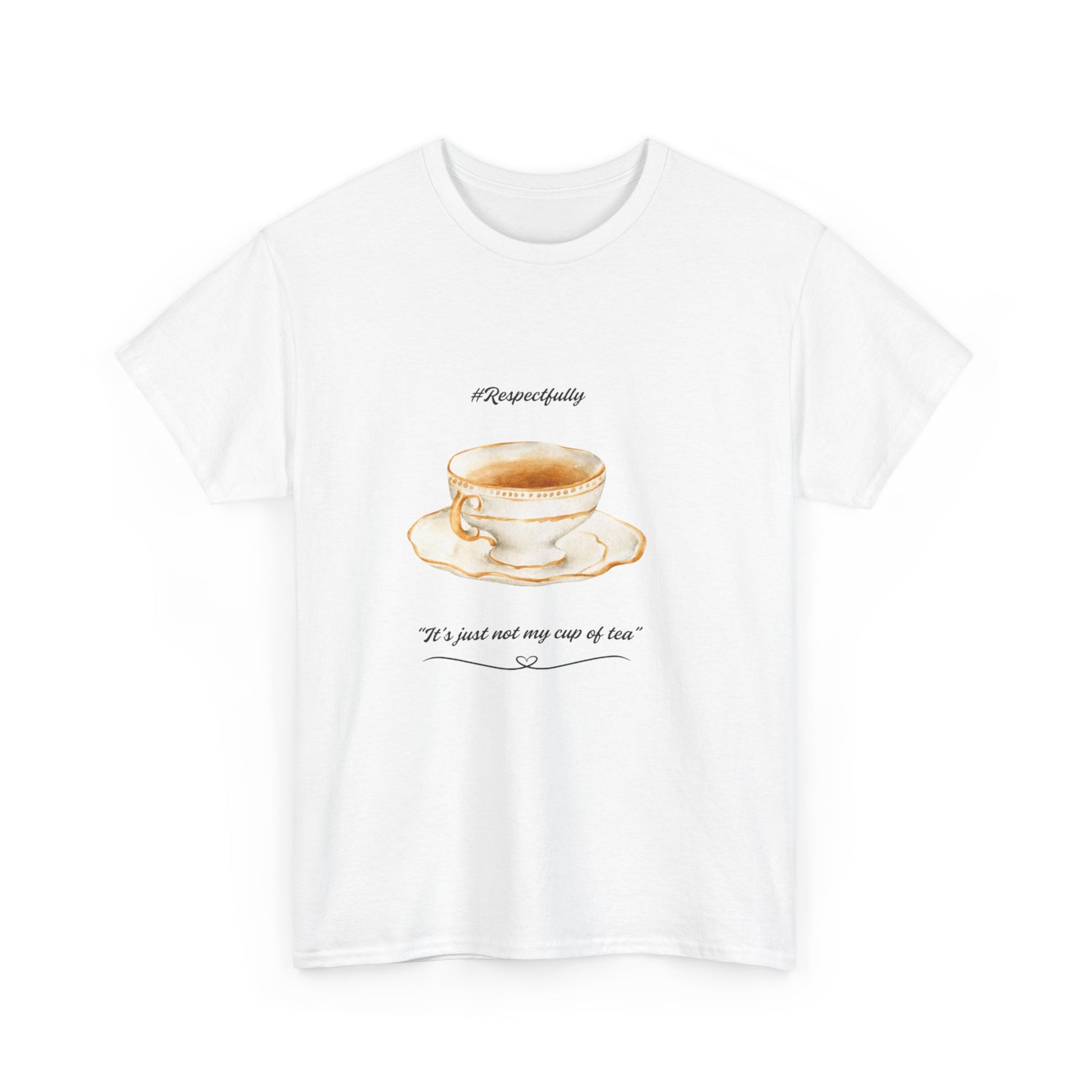 #Respectfully is a t-shirt for youth who express their opinions, "respectfully." A twist on the old school idiom, "It's just not my cup of tea" is proof of the declaration that some teenagers choose to use. Need to say something without a fright? Well then, this t-shirt just might be your cup of tea.